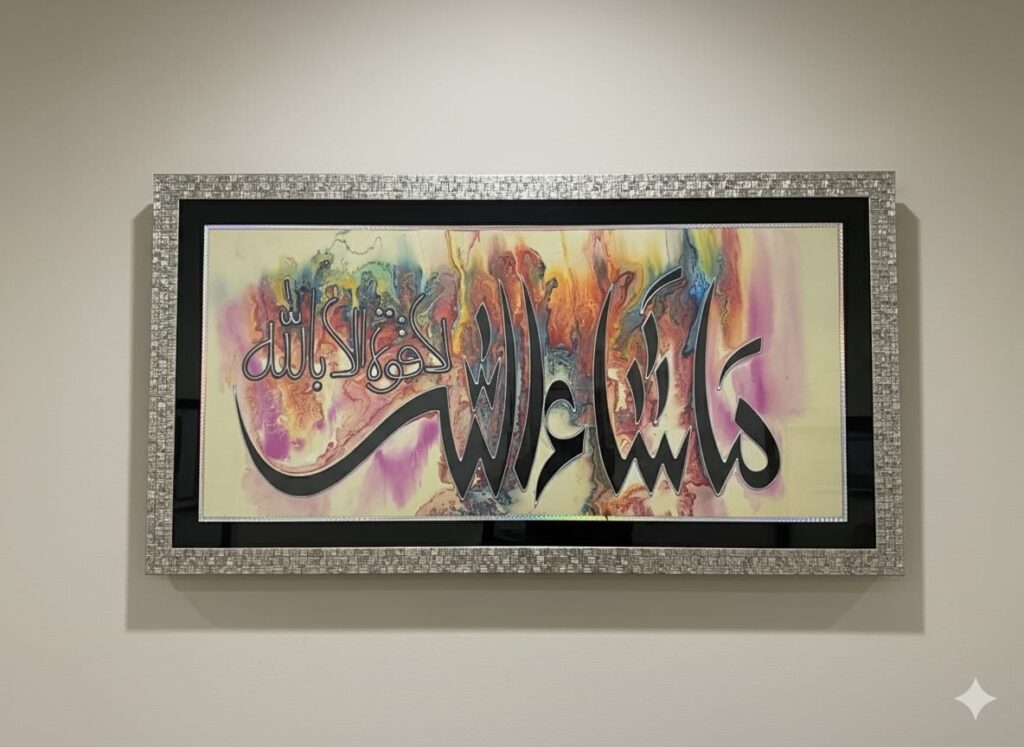 Our journey began with a simple idea: to help people bring peace and purpose into their homes through art that speaks to the heart. Every piece we create — from elegant Arabic calligraphy to powerful Qur’anic verses — is designed to uplift your space and your soul.