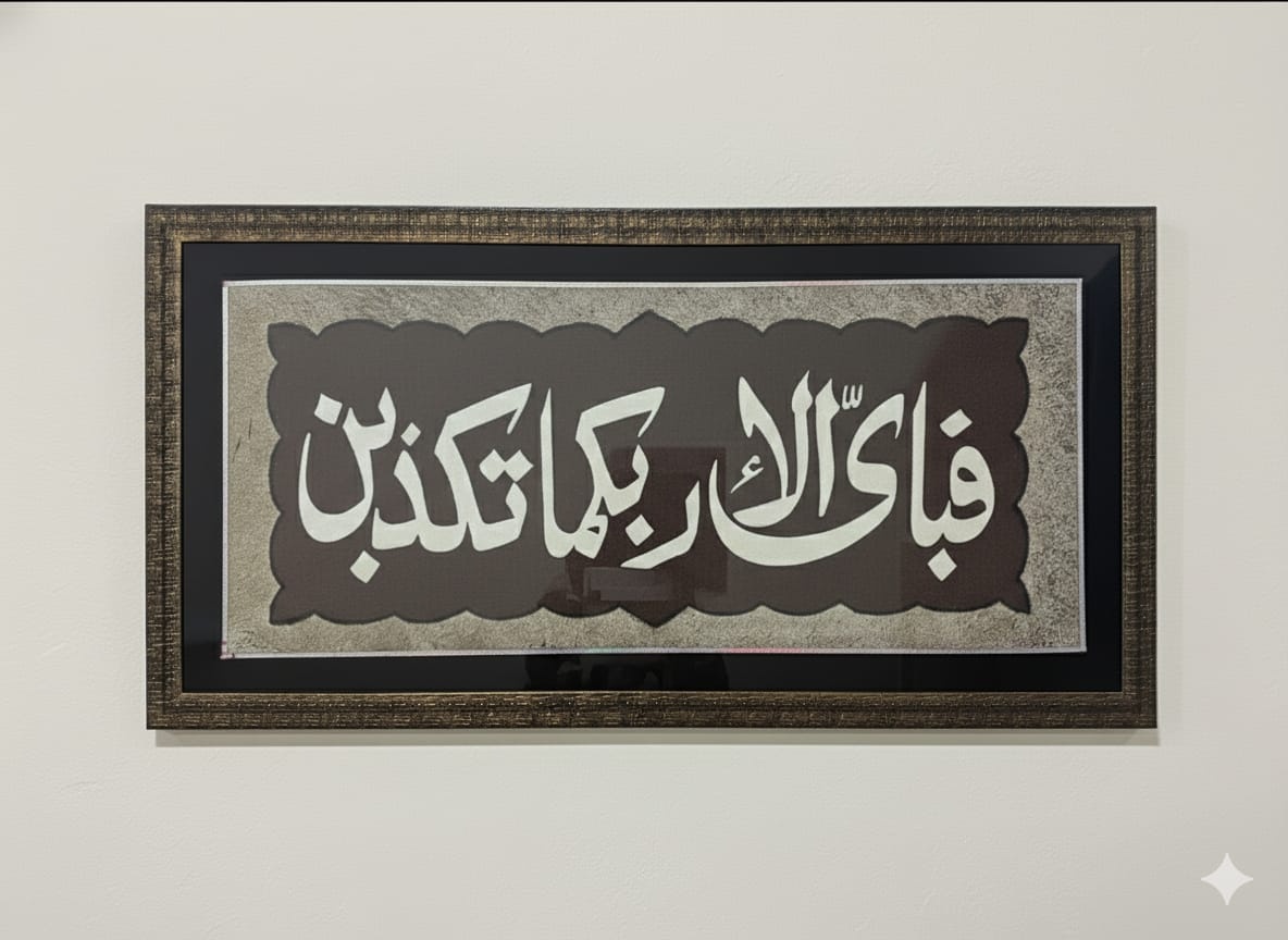 Bring spiritual elegance and modern aesthetics together in your living space with this breathtaking abstract wall art inspired by the verse “Fabi Aye Allah Rabbikuma Tukazziban”. Designed to enhance the beauty of any room, this premium framed artwork adds a touch of class, inspiration and deep meaning to your home or office décor.