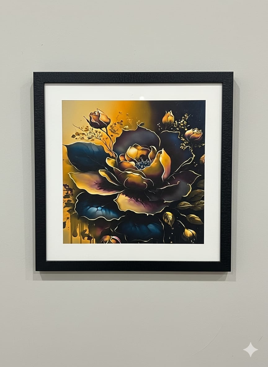 Add a touch of luxury and warmth to your interior with this stunning golden abstract floral framed artwork. Featuring a bold, artistic flower design in deep shades of gold and black, this wall art is perfect for elevating modern living spaces, bedrooms, lounges, offices and galleries. Its premium frame and vibrant detailing make it an eye-catching décor statement piece.
